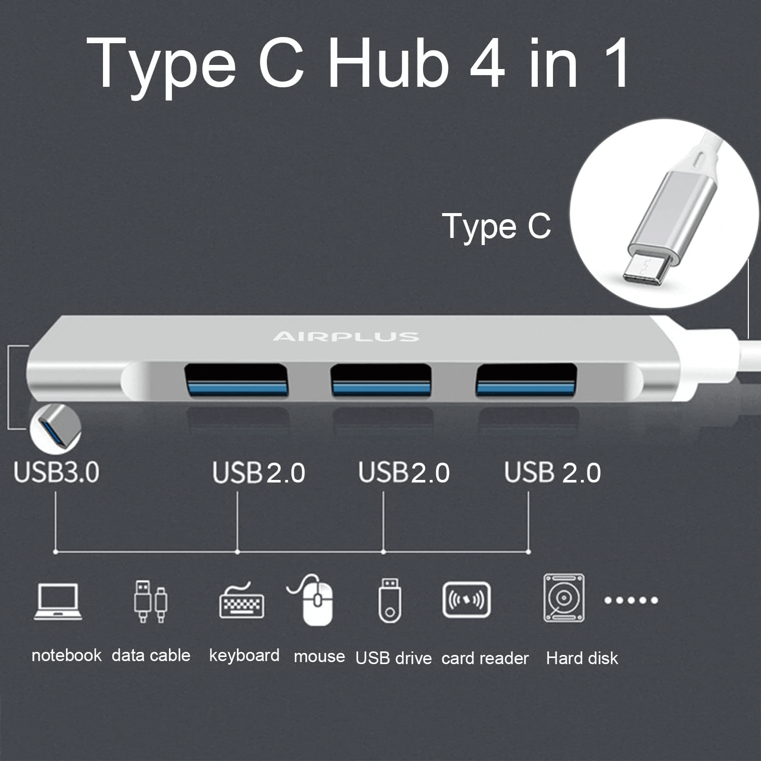 Airplus Adaptateur USB-C® multiport 4-en-1