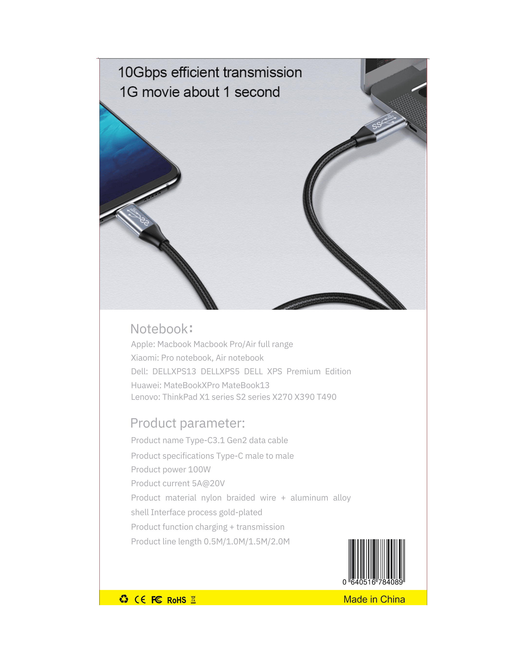 Branchez votre ordinateur portable USB-C sur un moniteur USB-C et profitez d’un rechargement de 100 W, d’une qualité audio / vidéo de haute définition et d’un transfert de données ultrarapide, et ce, avec un seul et même câble. Certifié conforme USB-IF, ce câble vous permet de recharger votre ordinateur portable jusqu’à 100 W, vous évitant ainsi de transporter un câble de recharge supplémentaire. Compatible 4K jusqu’à 60 Hz, ce câble vous permet d’obtenir rapidement des contenus audio et vidéo parfaits. Ce câble est en outre compatible avec l’USB 3.0 pour un débit de transfert de données pouvant atteindre 10 Gbit/s.
