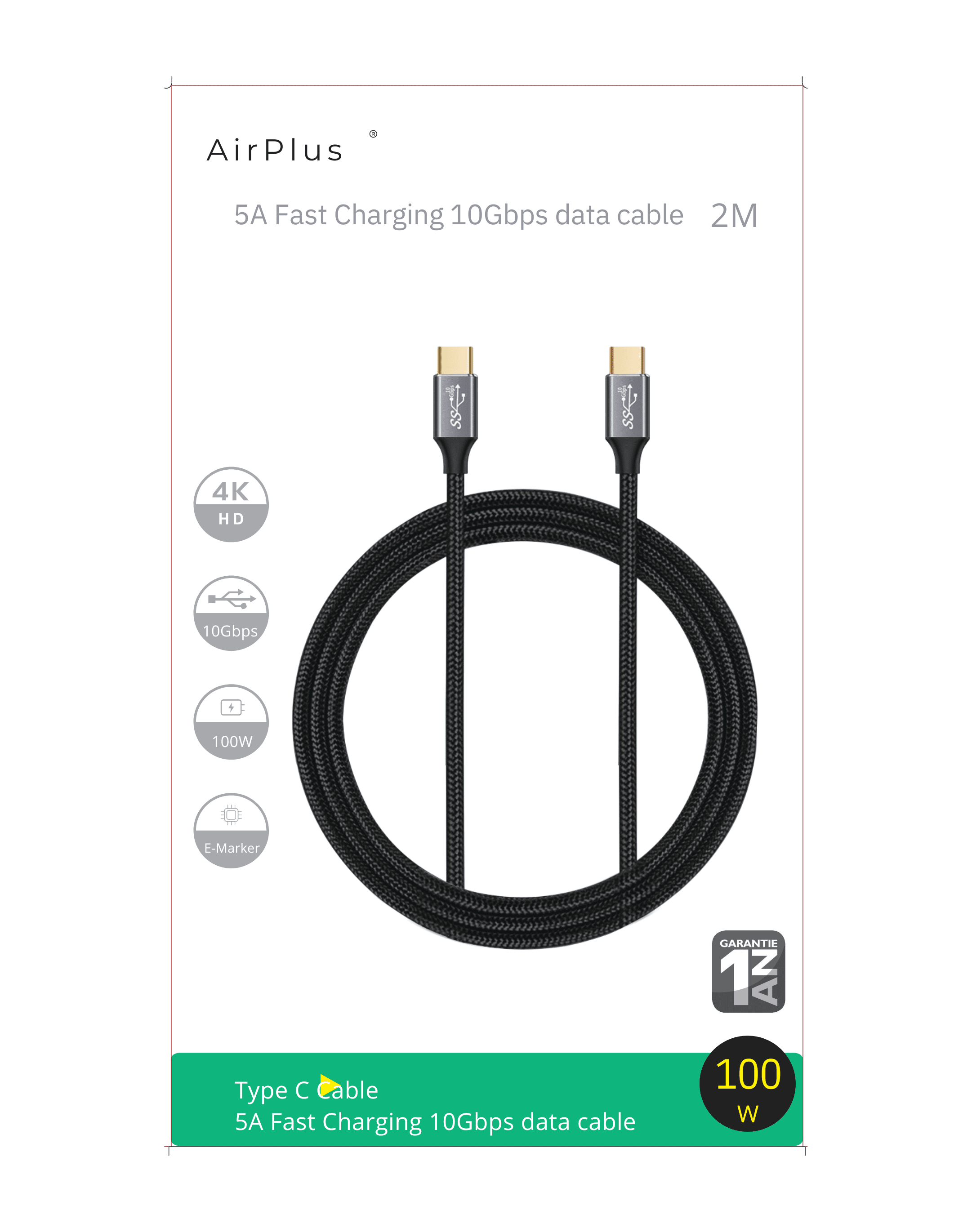 Câble à gaine tressée USB-C (2m 5A 100w)